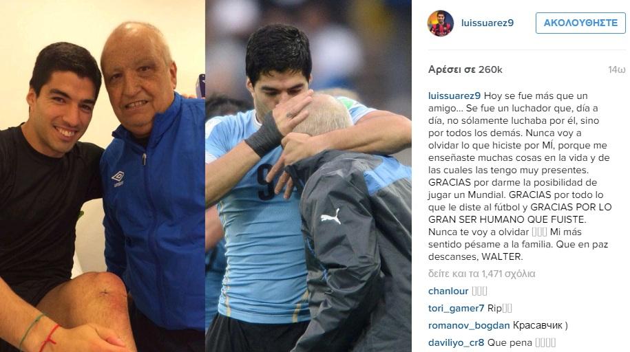Ο Λουίς Σουάρες αποχαιρέτησε με ιδιαίτερο τρόπο τον Βάλτερ Φερέιρα, φυσιοθεραπευτή της εθνικής ομάδας της Ουρουγουάης, ο οποίος «έφυγε» από τη ζωή.