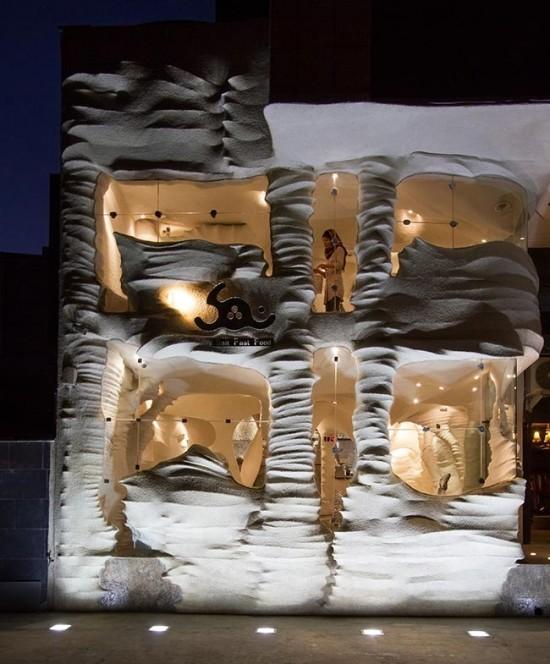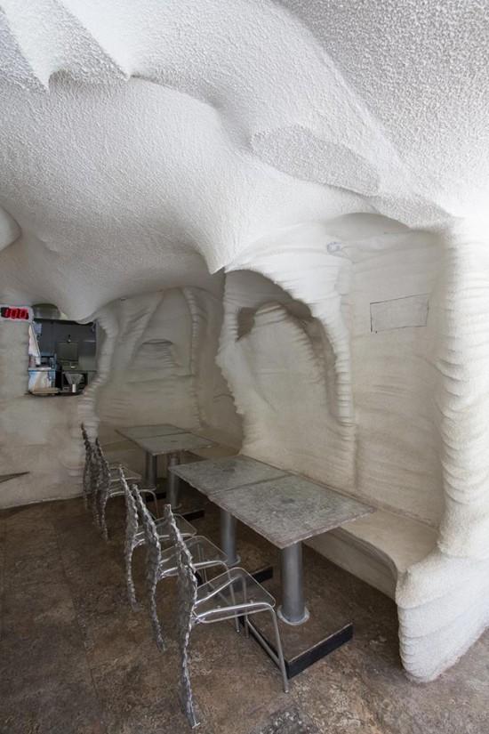 Εμπνευσμένοι από τα σπήλαια άλατος, οι αρχιτέκτονες εστίασης του Ιράν ισχυρίζονται ότι το υλικό του κτιρίου απορροφά τις μυρωδιές και δημιουργεί θετικά ιόντα στην ατμόσφαιρα.