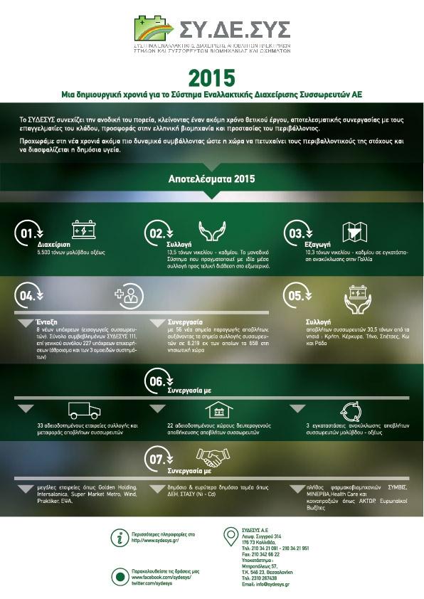 Με ιδιαίτερα θετικό πρόσημο κλείνει το 2015 για το ΣΣΕΔ ΣΥΔΕΣΥΣ, το πρώτο αδειοδοτημένο Σύστημα διαχείρισης συσσωρευτών στην Ελλάδα.