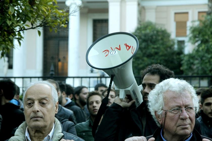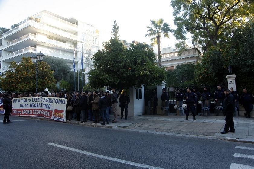 Σε μία κίνηση αιφνιδιασμού τα μέλη του ΠΑΜΕ κατάφεραν να φτάσουν έξω από Μέγαρο Μαξίμου και να πραγματοποιήσουν συγκέντρωση διαμαρτυρίας κατά του ασφαλιστικού, χωρίς καν οι αστυνομικοί να προλάβουν να τους σταματήσουν.