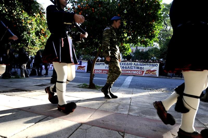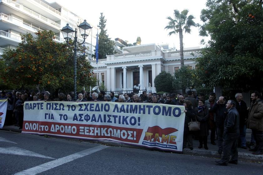 Σε μία κίνηση αιφνιδιασμού τα μέλη του ΠΑΜΕ κατάφεραν να φτάσουν έξω από Μέγαρο Μαξίμου και να πραγαμτοποιήσουν συγκέντρωση διαμαρτυρίας κατά του ασφαλιστικού, χωρίς καν οι αστυνομικοί να προλάβουν να τους σταματήσουν.