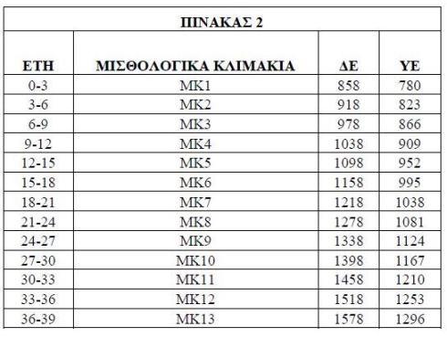 Οι βασικοί μισθοί των υπαλλήλων σε όλες τις κατηγορίες:
