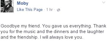 Με μια φωτογραφία και ένα συγκινητικό κείμενο αποχαιρέτησε ο Moby τον θρυλικό ροκ σταρ David Bowie.