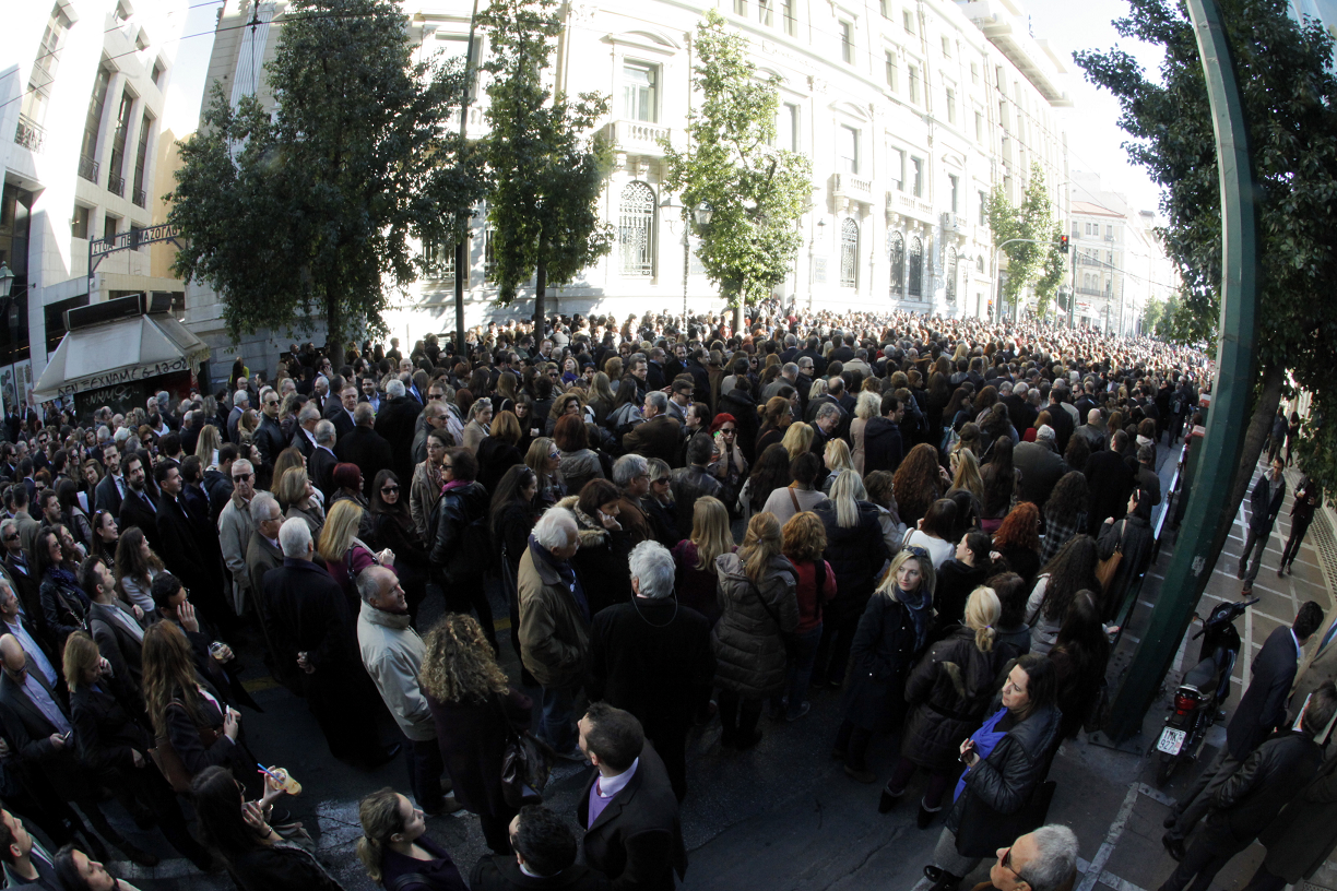 Συγκέντρωση κατά του ασφαλιστικού πραγματοποίησαν στο κέντρο της Αθήνας γιατροί, μηχανικοί, δικηγόροι, συμβολαιογράφοι και δικαστικοί επιμελητές, φωνάζοντας, μεταξύ άλλων, συνθήματα όπως «Κάτσε καλά Κατρούγκαλε».