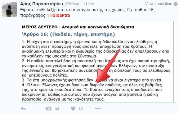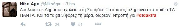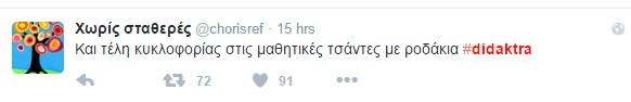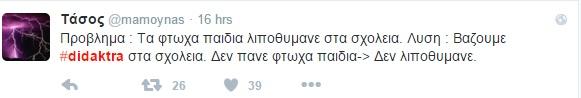 Οι χρήστες του twitter φρόντισαν εκφράσουν τις αντιρρήσεις τους στη συγκεκριμένη πρόταση, δημοσιεύοντας σχόλια με το hashtag #didaktra. Απολαύστε μερικά από αυτά.