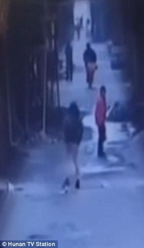 Η γυναίκα περπατούσε αμέριμνη σε έναν δρόμο στην Κίνα. Ξαφνικά στο πλάνο της κάμερας εμφανίζεται ένας άγνωστος που φοράει ένα καφέ σακάκι και ο οποίος μιλάει στο κινητό του.