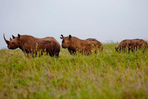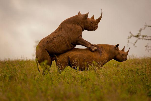 Δύο μαύροι ρινόκεροι ζευγάρωναν πίσω από την πλάτη του φωτογράφου Γκρεγκ Άρμφιλντ, ενώ εκείνος τραβούσε φωτογραφίες από έναν φύλακα στο Εθνικό Πάρκο του Ναϊρόμπι για λογαριασμό της εθνικής υπηρεσίας άγριας φύσης της Κένυας.