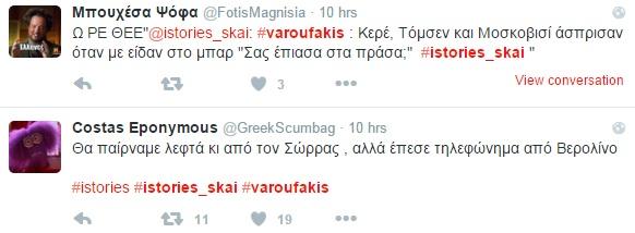 Οι χρήστες του twitter αντέδρασαν στη χθεσινή συνέντευξη του Γιάνη Βαρουφάκη με καυτερές ατάκες και χιούμορ, σχολιάζοντας τα λεγόμενα του πρώην υπουργού Οικονομικών.