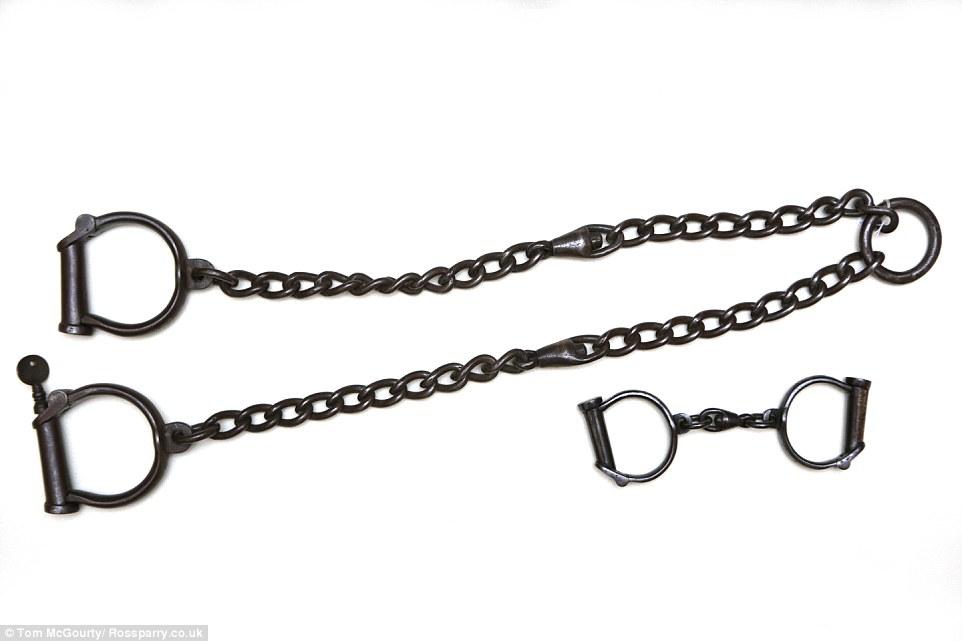 Αλυσίδες για τα πόδια και χειροπέδες που δημιουργήθηκαν στο Μπέρμιγχαμ το 1840-1860, για να συγκρατούν τα χέρια και τα πόδια των κρατουμένων.