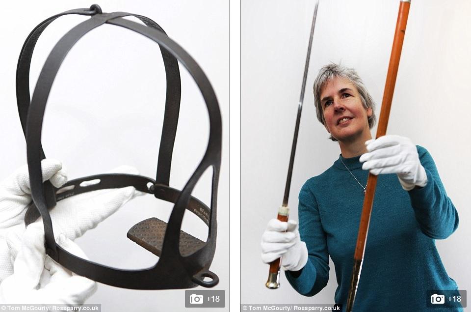 Η εκθέτρια Κίτι Ρος παρουσίασε ένα μπαστούνι (δεξιά) που έκρυβε μέσα του μια πολύ κοφτερή λεπίδα. Ήταν αρκετά δημοφιλές τον 18ο και 19ο αιώνα.