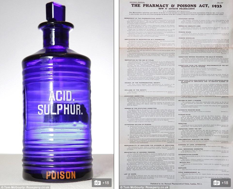 Στη βικτωριανή εποχή μπουκάλια με θεικό οξύ ήταν διαθέσιμα στην αγορά, πριν το 1933 όταν αυξήθηκε ο έλεγχος ενός ευρύτερου καταλόγου δηλητηρίων για πρώτη φορά.