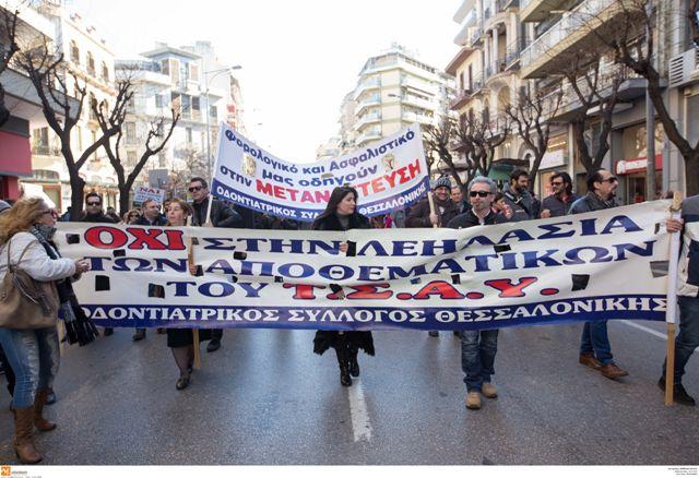 Με συνθήματα εναντίον της κυβέρνησης και του υπουργού Εργασίας Γιώργου Κατρούγκαλου, επιστήμονες διαδήλωσαν στη Θεσσαλονίκη κατά του σχεδίου της κυβέρνησης για το ασφαλιστικό.