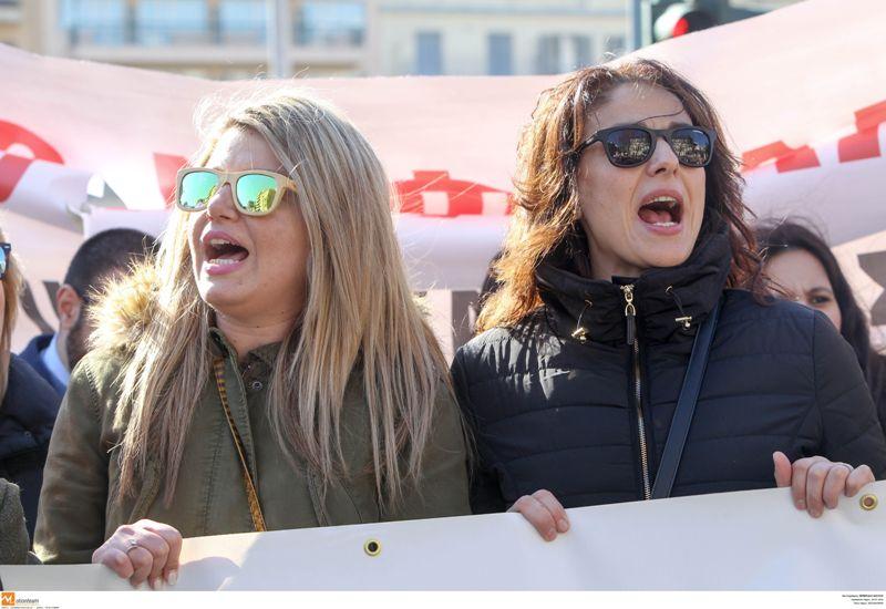 Στη συνέχεια έκαναν πορεία με πανό και πλακάτ και φωνάζοντας συνθήματα, όπως: “Κατρούγκαλε ντροπή σου, παρατήσου”, “θα γίνει χαμός θα γίνει πανικός, δεν θα μας πεθάνει ο Κατρούγκαλος”, “εσείς με τα φουλάρια, εμείς με τις γραβάτες, όχι άλλα βάρη στις δικές μας πλάτες”, κάτω τα χέρια απ τα Ταμεία”, ” το Ασφαλιστικό δεν θα περάσει” κ.ά.