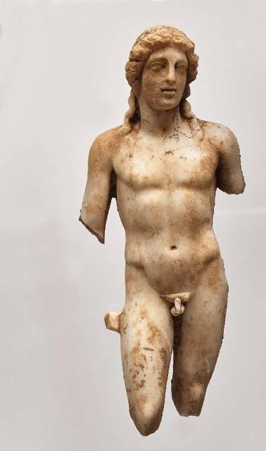 Με ωραία κίνηση, τον χιτώνα της περιποιημένο και τα μαλλιά της χτενισμένα σε μια περίτεχνη κόμμωση, η Αρτεμις, έτοιμη να ρίξει το τόξο της, εντυπωσίασε με τη λεπτομέρειά της τους αρχαιολόγους στην Απτέρα Χανίων. Ο δίδυμος αδελφός της, Απόλλωνας, μαρμάρινος, διαφορετικής ιδιοσυγκρασίας, στεκόταν στητός και λιτός.