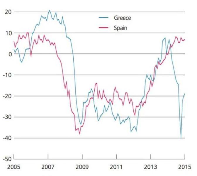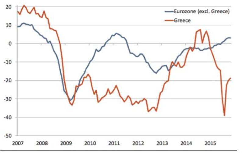 «Ως απάντησή μου δημοσίευσα το δικό μου άρθρο στο Project Syndicate. Το συμπέρασμα; Ότι η ελληνική οικονομία καταστράφηκε σκοπίμως από τους σκοπούς της Τρόικας να τιμωρήσει τους Έλληνες ψηφοφόρους για την επιλογή της κυβέρνησης ΣΥΡΙΖΑ προκειμένου να αμφισβητήσει τις λανθασμένες πολιτικές της. Ο κ. Schmieding απλώς μετονόμασε «τον αντίκτυπο της Τρόικας» σε «Αντίκτυπο του Βαρουφάκη», χρησιμοποιώντας το παρακάτω διάγραμμα» υποστηρίζει ο πρώην υπουργός Οικονομικών.