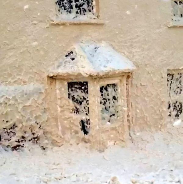 Ολόκληρο το χωριό, τα σπίτια, τα οικόπεδα, τα παράθυρα των σπιτιών, οι δρόμοι, οι ταράτσες, τα πάντα έχουν καλυφθεί με αφρό και όχι με χιόνι όπως μοιάζει με την πρώτη ματιά.