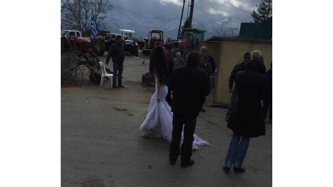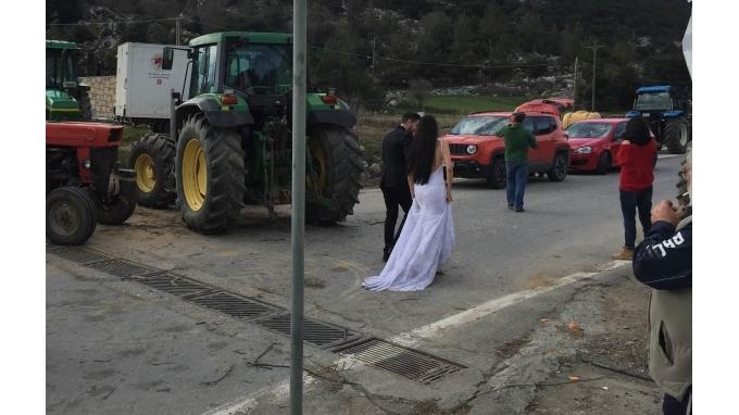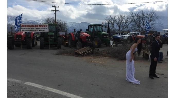 Αγωνιστικά θέλησε να γιορτάσει τον γάμο του ένα ζευγάρι στο Οροπέδιο Λασιθίου Κρήτης, καθώς μετά το μυστήριο μεταφέρθηκε σε μπλόκο αγροτών αντό για τον χώρο της γαμήλιας δεξίωσης.