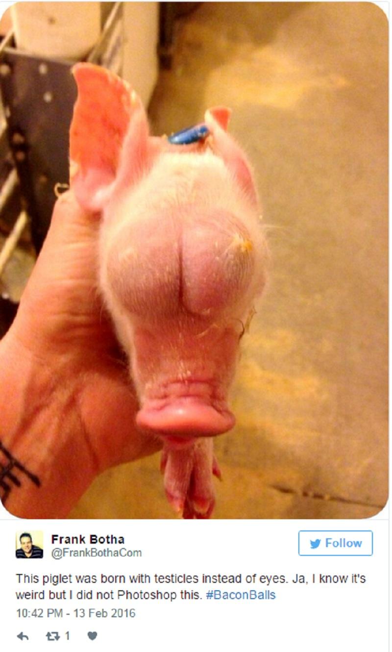 Εκατομμύρια χρήστες των μέσων κοινωνικής δικτύωσης έχουν δει αυτή τη φωτογραφία. Ένα μικρό γουρουνάκι, δίχως μάτια, που τη θέση τους έχουν πάρει δυο όρχεις. Και όχι μόνο αυτό αλλά κανείς δεν ξέρει εάν αυτό το γουρουνάκι είναι αρσενικό ή θηλυκό.