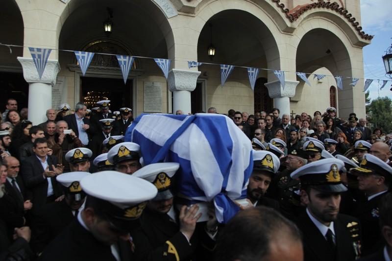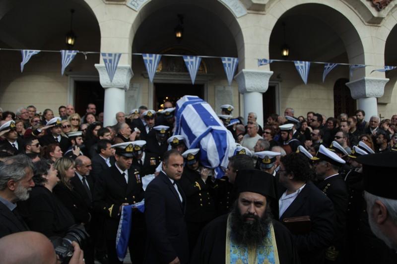 Η εξόδιος ακολουθία εψάλη στον ιερό ναό Ευαγγελισμού της Θεοτόκου, στο Ίλιον. Το φέρετρο ήταν σκεπασμένο με την ελληνική σημαία και άγημα του Πολεμικού Ναυτικού απέδωσε τιμές.