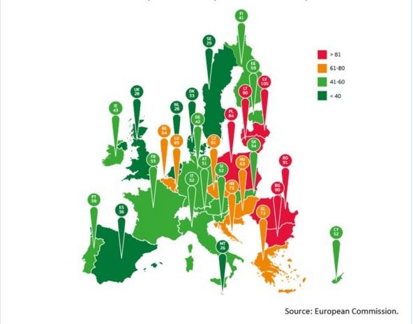 Στη χειρότερη θέση βρίσκονται οι χώρες της ανατολικής Ευρώπης, Βουλγαρία, Ρουμανία, Πολωνία και οι χώρες της Βαλτικής, ακολουθούν η Ελλάδα, η Κροατία, η Ουγγαρία, το Βέλγιο και η Τσεχία. Οι χώρες της Δυτικής Ευρώπης αποδεικνύεται ότι έχουν την καλύτερη οδική συμπεριφορά με την Ισπανία, τη Μεγάλη Βρετανία, τη Δανία, την Ολλανδία και τη Σουηδία να έχουν τα χαμηλότερα ποσοστών θανατηφόρων τροχαίων δυστυχημάτων.