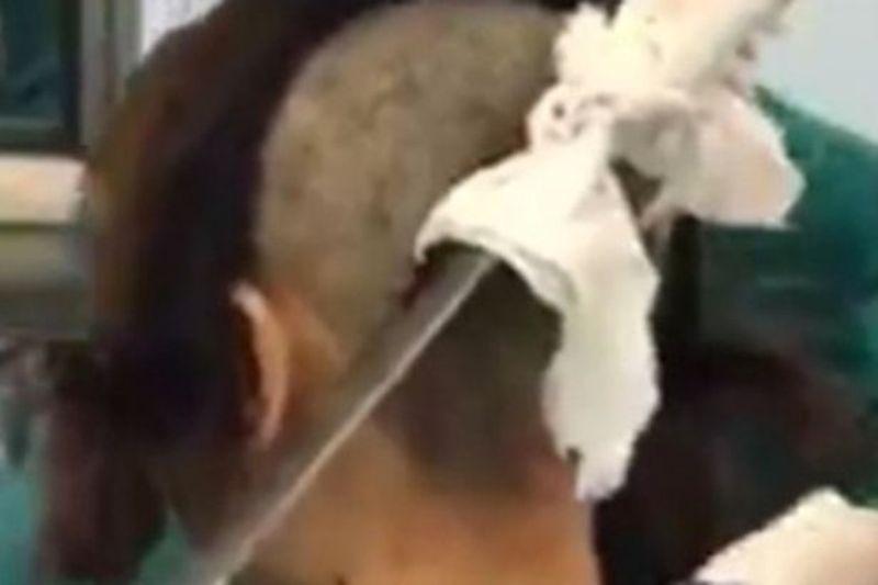 Ο μπαλτάς καρφώθηκε και σφηνώθηκε στο κρανίο. Η ζωή του κινδύνευε άμεσα και οι γιατροί στο νοσοκομείο χρειάστηκαν πολλές ώρες για να τον σώσουν.