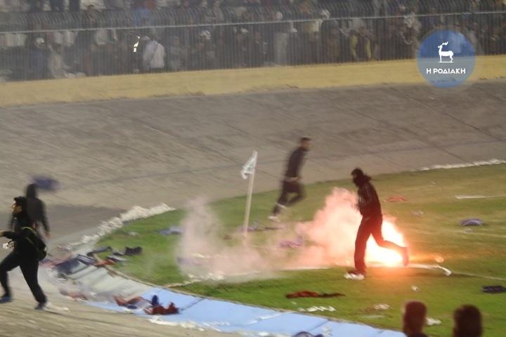 Επεισόδια σημειώθηκαν σήμερα το απόγευμα, αμέσως μετά τη λήξη του τελικού του κυπέλλου ποδοσφαίρου στο Δημοτικό Στάδιο της Ρόδου, που βρήκε νικήτρια την ομάδα του Ιάλυσου απέναντι στον Διαγόρα με 6-5 στα πέναλτι.