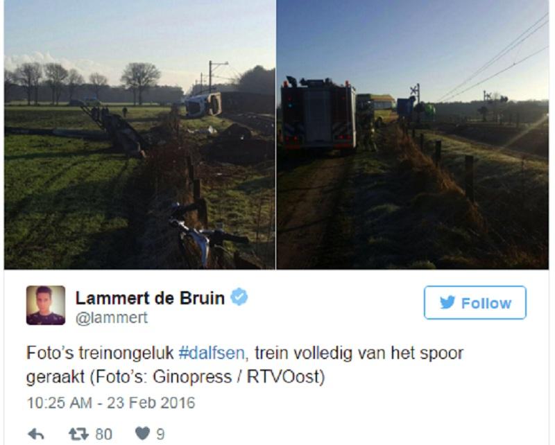 Σφοδρή σύγκρουση μεταξύ ενός τρένου και ενός γερανού έγινε κοντά στην πόλη Ντάλφσεν στην Ολλανδία.