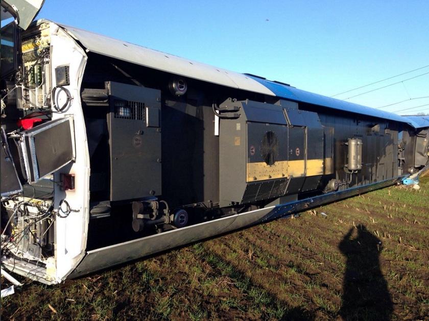 Το τρένο εκτροχιάστηκε εξαιτίας της σφοδρής σύγκρουσης και ανατράπηκε.