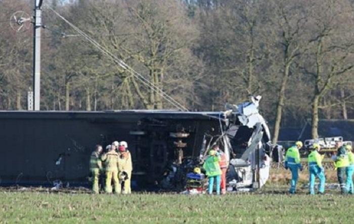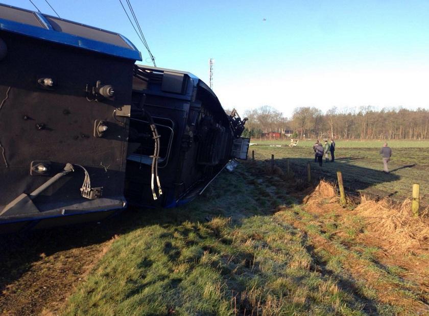 Σφοδρή σύγκρουση μεταξύ ενός τρένου και ενός γερανού σημειώθηκε κοντά στην πόλη Ντάλφσεν, στην Ολλανδία.