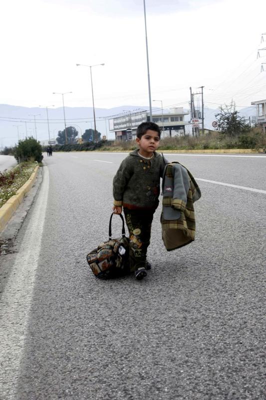 Μία συγκινητική φωτογραφία που εικονίζει ένα προσφυγόπουλο να περπατά με τα πόδια στην Εθνική Οδό, με κατεύθυνση προς την Ειδομένη, κάνει το γύρο του διαδικτύου.