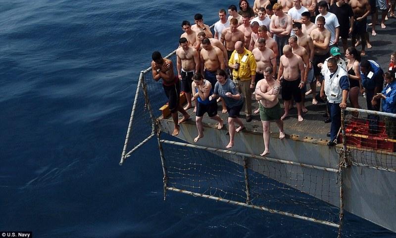 Ονομάζεται η «πρόκληση της βουτιάς» και όλο το πλήρωμα και κυρίως οι ναύτες καλούνται να βουτήξουν από το πλοίο μέσα στα βαθιά νερά.