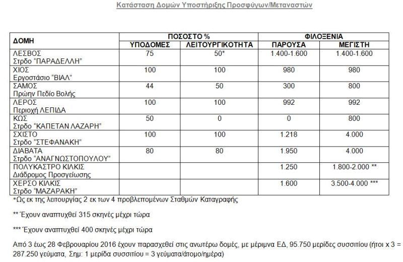 Ένα έγγραφο από το υπουργείο Εθνικής Άμυνας δείχνει την πληρότητα αυτή τη στιγμή στα 9 λειτουργικά hot spot που βρίσκονται στην Ελληνική επικράτεια.