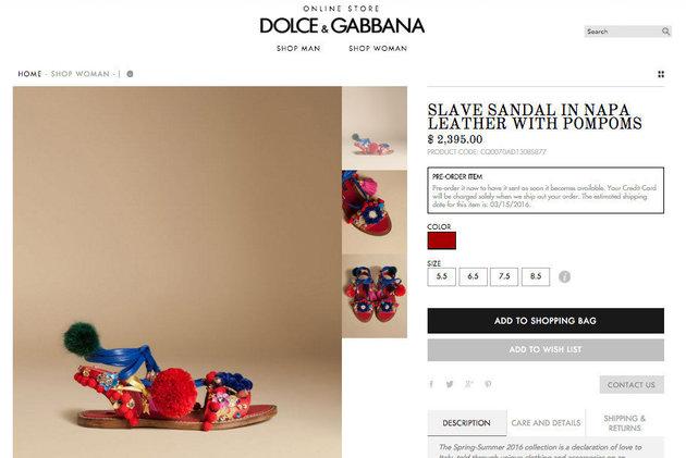 Ένα νέο ζευγάρι σανδάλια που λανσάρει ο οίκος Dolce & Gabbana, τα οποία ονόμασε «Slave Sandal» (Σανδάλια σκλάβου), προκάλεσαν την οργή των χρηστών του Twitter.