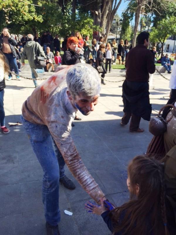 Στην προσωπική του σελίδα στο facebook ανέβασε τις φωτογραφίες με το σχόλιο: «Το πάθαμε κι αυτό στα αλευρομουτζουρώματα…. στην πλατεία Συντάγματος!! Γεύση από Στερεά Ελλάδα στην καρδιά της Αθήνας».