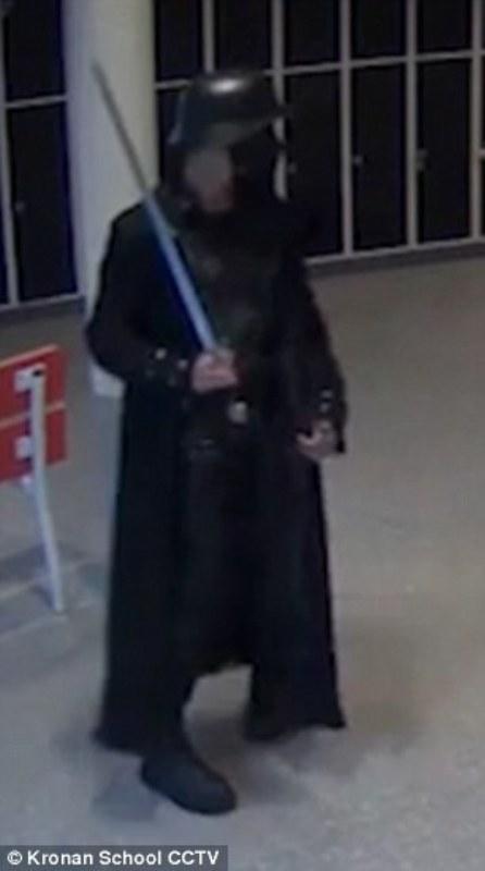 Το βίντεο έρχεται στη δημοσιότητα για πρώτη φορά και δείχνει το δολοφόνο ντυμένο Νταρθ Βέιντερ να εισβάλει σε σχολείο, λίγο πριν σφάξει με σπαθί, ένα μαθητή και δυο καθηγητές.