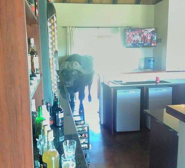 Φωτογραφίες ενός βουβαλιού που εισέβαλε στο open-bar του «Hlosi Game Lodge» τράβηξαν οι εργαζόμενοι του ξενοδοχείου, στη Νότια Αφρική.
