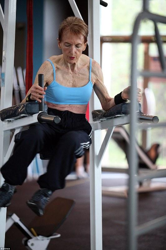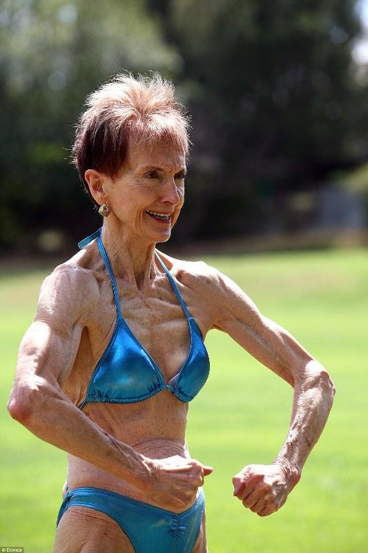 Τι και εάν έχει ξεπεράσει τα 73 της χρόνια. Ο ιδρώτας που έχυνε μια ζωή στα γυμναστήρια έχουν κάνει το κορμί της σφιχτό και με ελάχιστο λίπος.