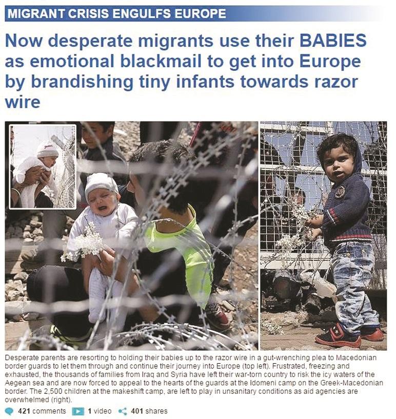 Το ρεπορτάζ με τις ρατσιστικές αναφορές προκάλεσε σωρεία αντιδράσεων. Δεν πτόησε ωστόσο την εφημερίδα, που συνέχισε το ρατσιστικό της παραλήρημα από τα ελληνοσκοπιανά σύνορα, γράφοντας με πηχυαίο τίτλο στην ηλεκτρονική της έκδοση ότι απελπισμένοι μετανάστες χρησιμοποιούν τα μωρά τους (τη λέξη μωρά με κεφαλαία) για να εκβιάσουν την είσοδό τους στην Ευρώπη. Το συγκεκριμένο ρεπορτάζ συνοδεύεται μάλιστα από τις φωτογραφίες ενός μικρού παιδιού και ενός βρέφους, μόλις λίγων ημερών, που κλαίει γοερά στην αγκαλιά του πατέρα του.