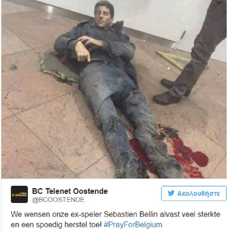 Ο Μπελίν, ο οποίος αγωνίζεται με τους Gent Hawks στο βελγικό πρωτάθλημα τραυματίστηκε σοβαρά, όπως φαίνεται στη φωτογραφία, η οποία ήταν μία από τις πρώτες εικόνες που έκαναν τον γύρο του διαδικτύου μετά την έκρηξη στο αεροδρόμιο των Βρυξελλών.