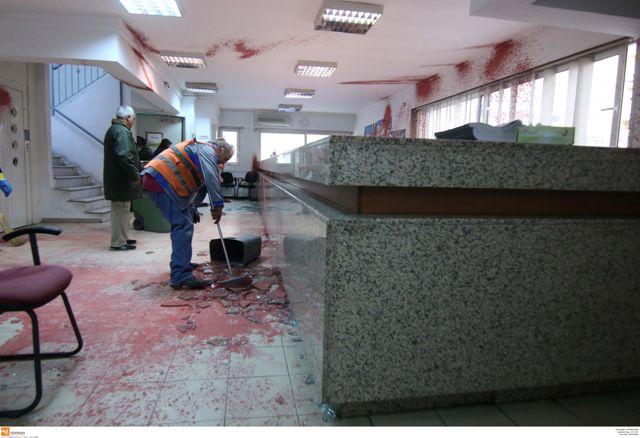 Μπογιά πέταξαν το πρωί άγνωστοι στη ΣΤ’ ΔΟΥ Θεσσαλονίκης, που βρίσκεται επί της οδού Τακαντζά, στην περιοχή του Φαλήρου.