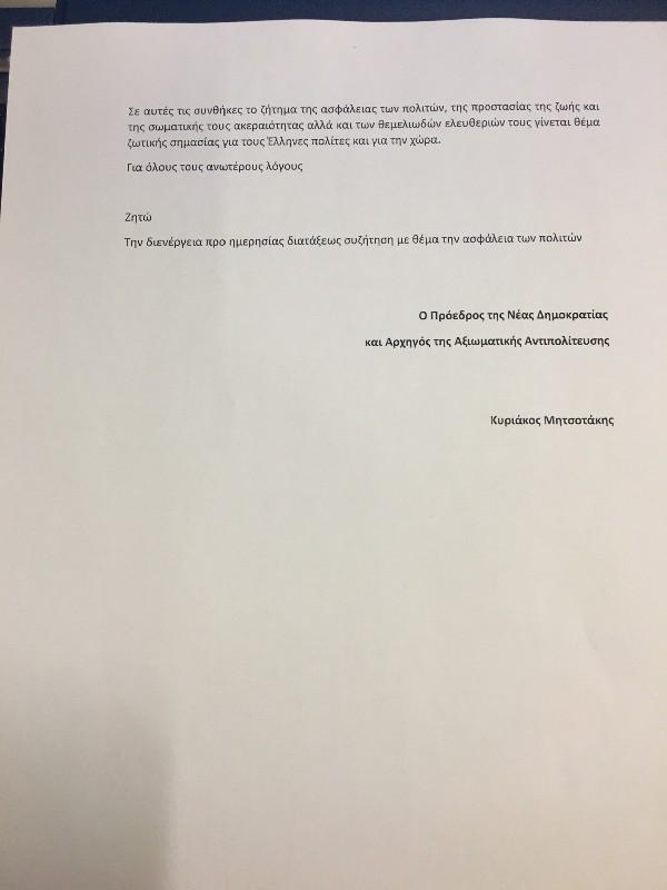 Και καταλήγει η ΝΔ σημειώνοντας πως «σε αυτές τις συνθήκες το ζήτημα της ασφάλειας των πολιτών, της προστασίας της ζωής και της σωματικής τους ακεραιότητας αλλά και των θεμελιωδών ελευθεριών τους γίνεται θέμα ζωτικής σημασίας για τους Έλληνες πολίτες και για την χώρα».