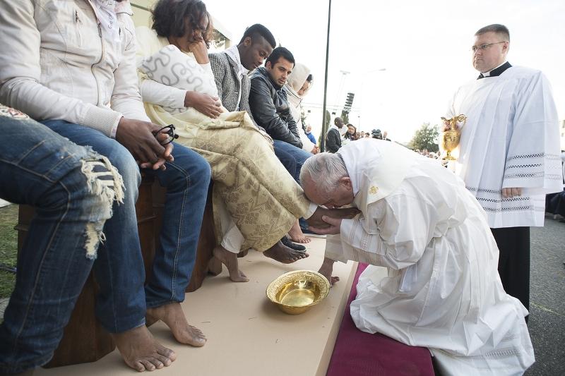 Ένα ισχυρό μήνυμα θέλησε να στείλει κατά τη Μεγάλη Πέμπτη των Καθολικών ο Πάπας Φραγκίσκος. Ο Πάπας επέλεξε να αναβιώσει την τελετή του νιπτήρος, δηλαδή να σκύψει, να πλύνει και να φιλήσει τα πόδια 12 προσφύγων, όπως είχε κάνει η Ιησούς στους 12 μαθητές του λίγες ώρες πριν οδηγηθεί στο Σταυρό του Μαρτυρίου.