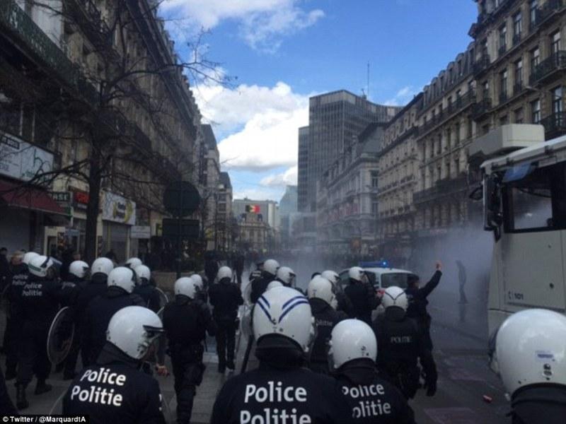 Οι συγκεντρωμένοι ακροδεξιοί, τους οποίους αρχικά παρακολουθούσαν διακριτικά από απόσταση οι αστυνομικοί, φώναζαν επίσης συνθήματα εναντίον του Ισλαμικού Κράτους, της τζιχαντιστικής οργάνωσης που ανέλαβε την ευθύνη για τις επιθέσεις στο αεροδρόμιο και το μετρό των Βρυξελλών.