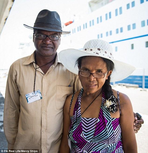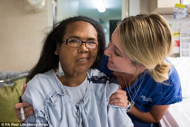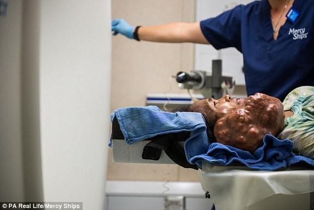 Στην απόγνωσή της, η 50χρονη περίμενε στην ουρά για 8 ώρες για να ζητήσει από τους χειρούργους του «Mercy Ships» – ένα πλωτό νοσοκομείο – να αφαιρέσουν τον όγκο.