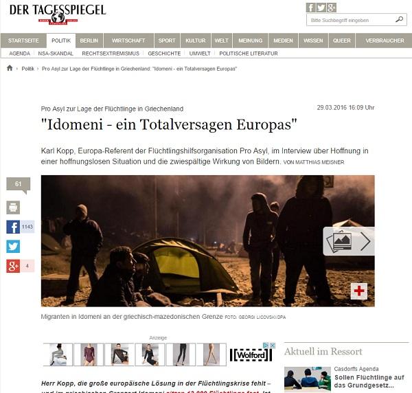 Ο Καρλ Κοπ, επικεφαλής του ευρωπαϊκού τμήματος της γερμανικής οργάνωσης για τους πρόσφυγες PRO ASYL, κατηγόρησε την Ευρώπη για πλήρη αποτυχία στην Ειδομένη.