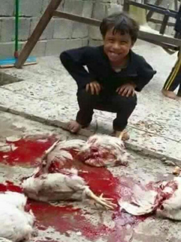 Τι έκαναν λοιπόν εγκέφαλοι του ISIS που θα τους ζήλευε και ο Γκέμπελς; Έσφαξαν κοτόπουλα, γέμισαν με το αίμα τους ένα πεζοδρόμιο και έβαλαν να ξαπλώσει σαν νεκρό και ακούνητο ένα παιδάκι. Στη συνέχεια τράβηξαν τη φωτογραφία, την ανέβασαν στο διαδίκτυο και έγραψαν ότι «Αυτά κάνουν οι εχθροί του ISIS, στα μικρά παιδιά στις πόλεις που καταλαμβάνουν».