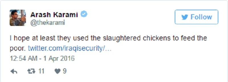 Φυσικά μετά την αποκάλυψη ο κόσμος ανταπαντούσε και μάλιστα υπήρχαν και κάποιοι με χιούμορ που έγραψαν πως «Ελπίζω μετά το τέλος της φωτογράφησης, οι δυνάμεις του ISIS να μοίρασαν τα νεκρά κοτόπουλα στον κόσμο που πεινάει»
