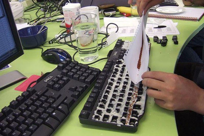 Λίγο πιο χρονοβόρο, αλλά αν το τολμήσετε θα δείτε μοναδικές αντιδράσεις. Βάλτε χαρτί υγείας στα πλήκτρα, τοποθετήστε σπόρους φακής και ρίξτε νερό. Όταν ανθίσουν οι σπόροι αφαιρέστε το χαρτί και αφήστε τους ανθισμένους σπόρους. Όλοι θα αναρωτιούνται πως «άνθισε» το πληκτρολόγιο.