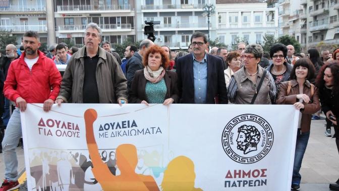 Ο Δήμαρχος Πάτρας, μιλώντας στην ΕΡΤ, μίλησε για το πρόβλημα της ανεργίας στην πόλη του, όπου η καταγεγραμμένη ανεργία είναι 30.000 άτομα. «Σήμερα ξεκινάμε το μεγάλο αγώνα για να διεκδικήσουμε δουλειά για όλους με δικαιώματα. Την άλλη Κυριακή θα είμαστε στην Αθήνα και το απόγευμα στο Σύνταγμα» είπε ο δήμαρχος.