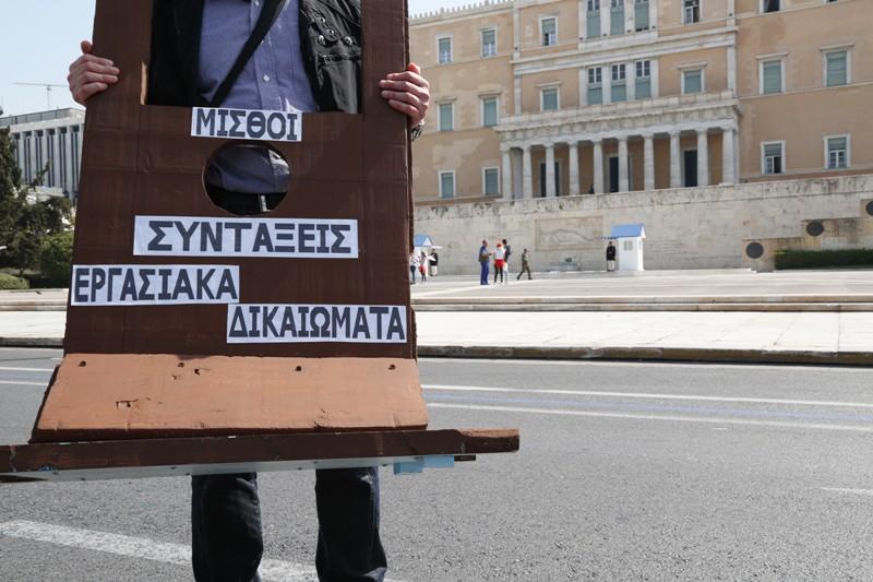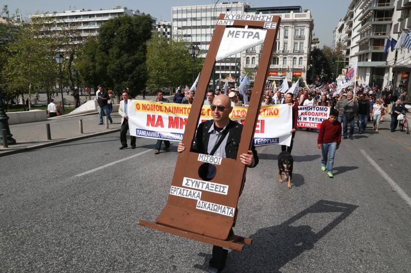 Τιε εντυπώσεις από την πορεία του ΠΑΜΕ στη Βουλή, κέρδισε ένας από τους συμμετέχοντες, ο οποίος διαδήλωσε κρατώντας μια αυτοσχέδια γκιλοτίνα.